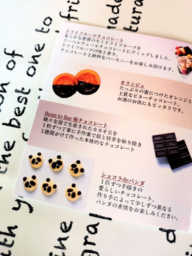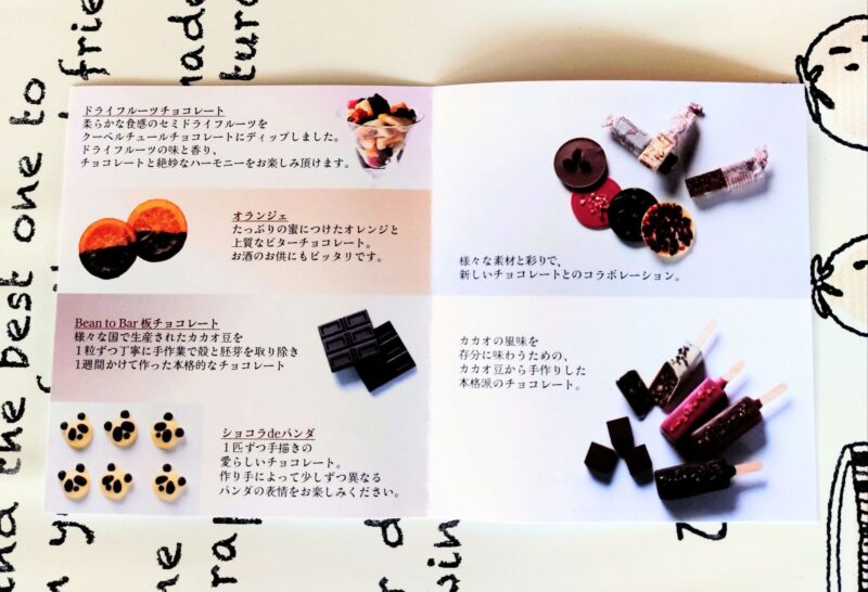 今回のセットの商品の他にも、いろいろなチョコレートのメニューがあるみたいです。